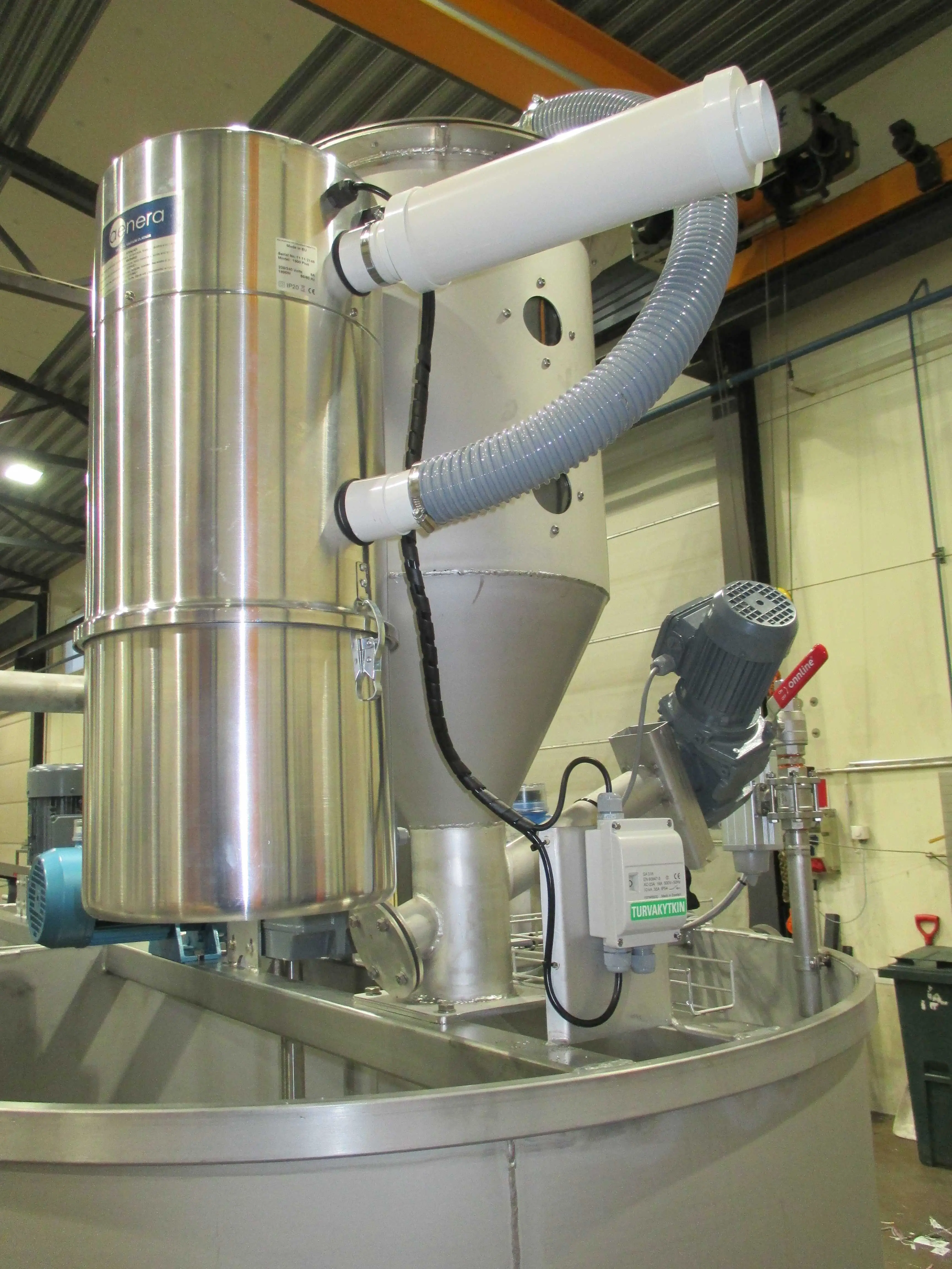 Для разгрузки реагентов (коагулянты, флокулянты и пр.) и дальнейшей загрузки в станции дозирования, возможно дополнительное комплектование системы подъемным устройством для разгрузки «биг-бэгов» - FW-PMT 1000C устанавливается стационарно и служит для загрузки из "биг-бэга" в предварительный бункер.