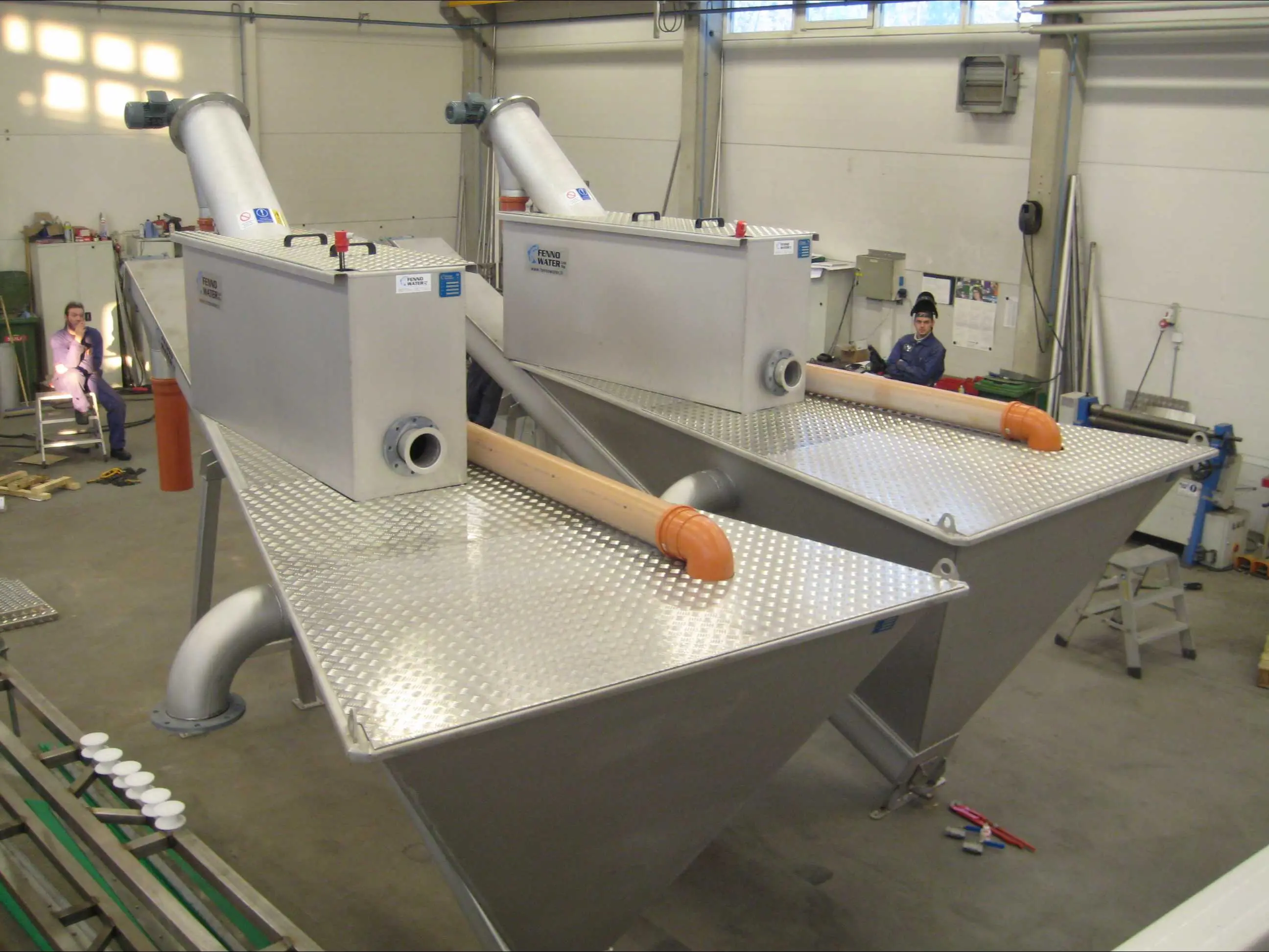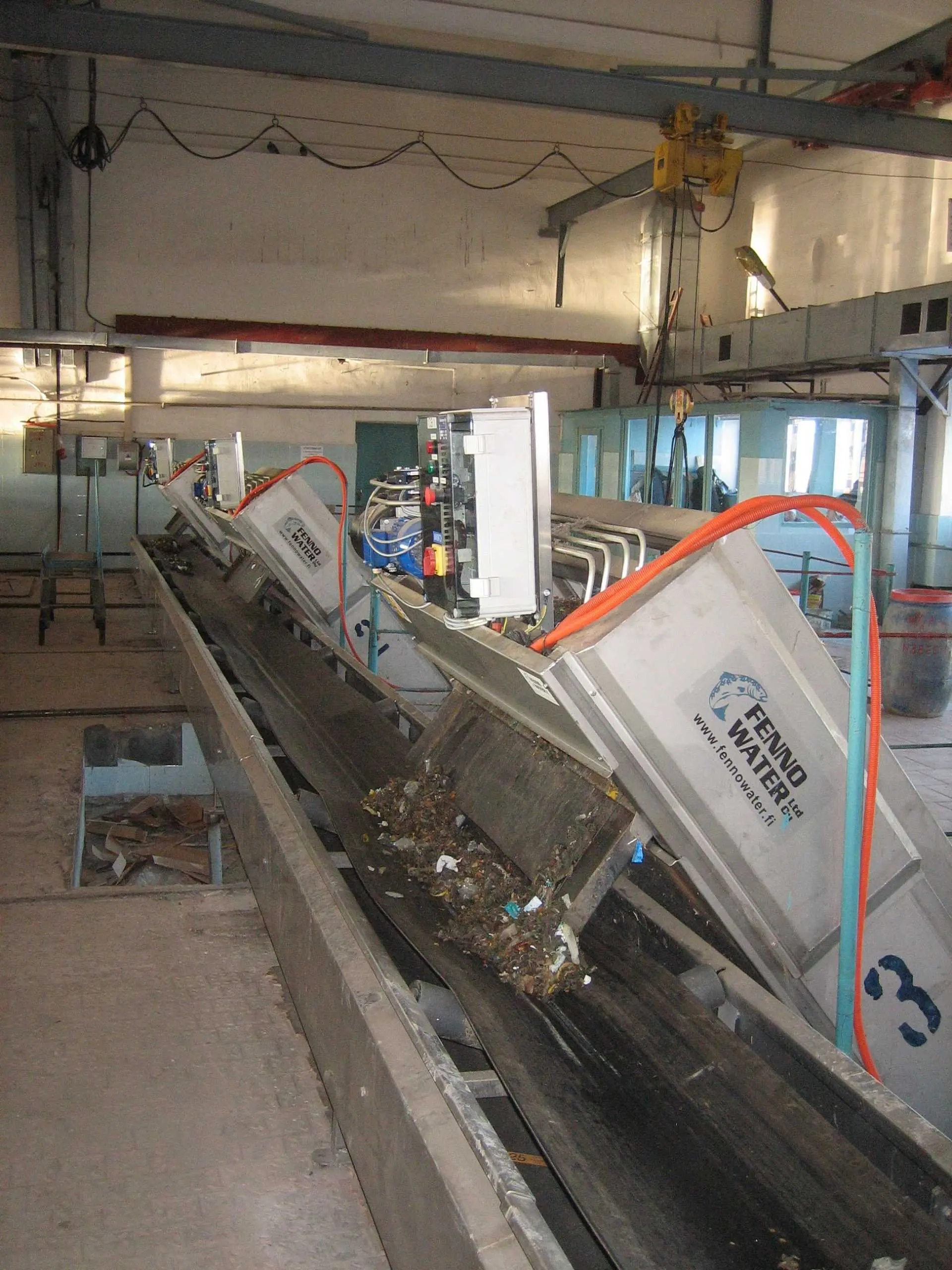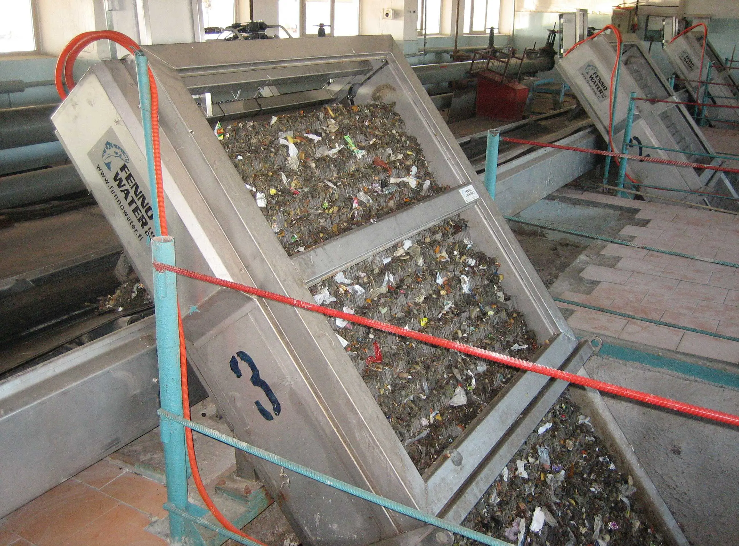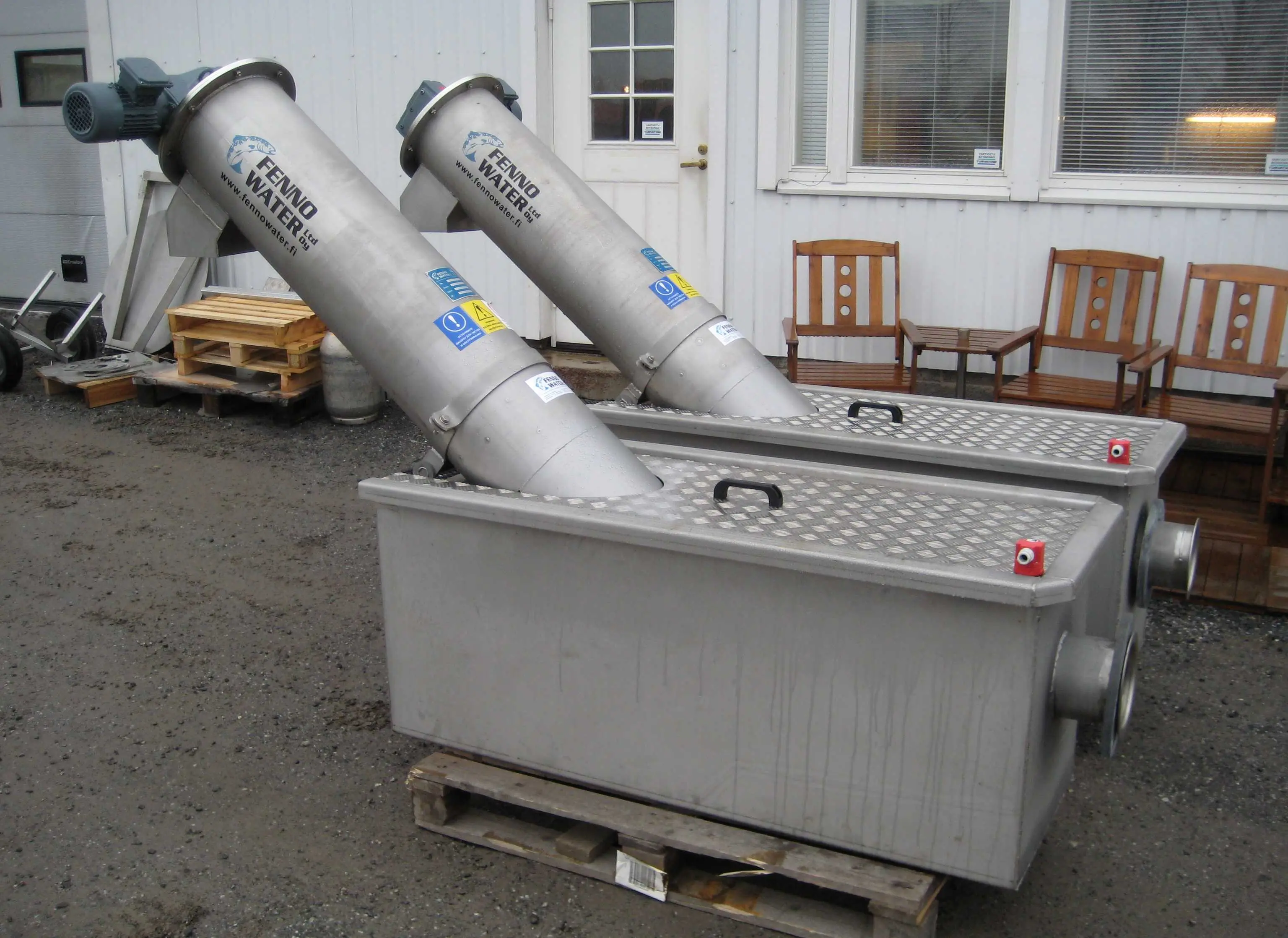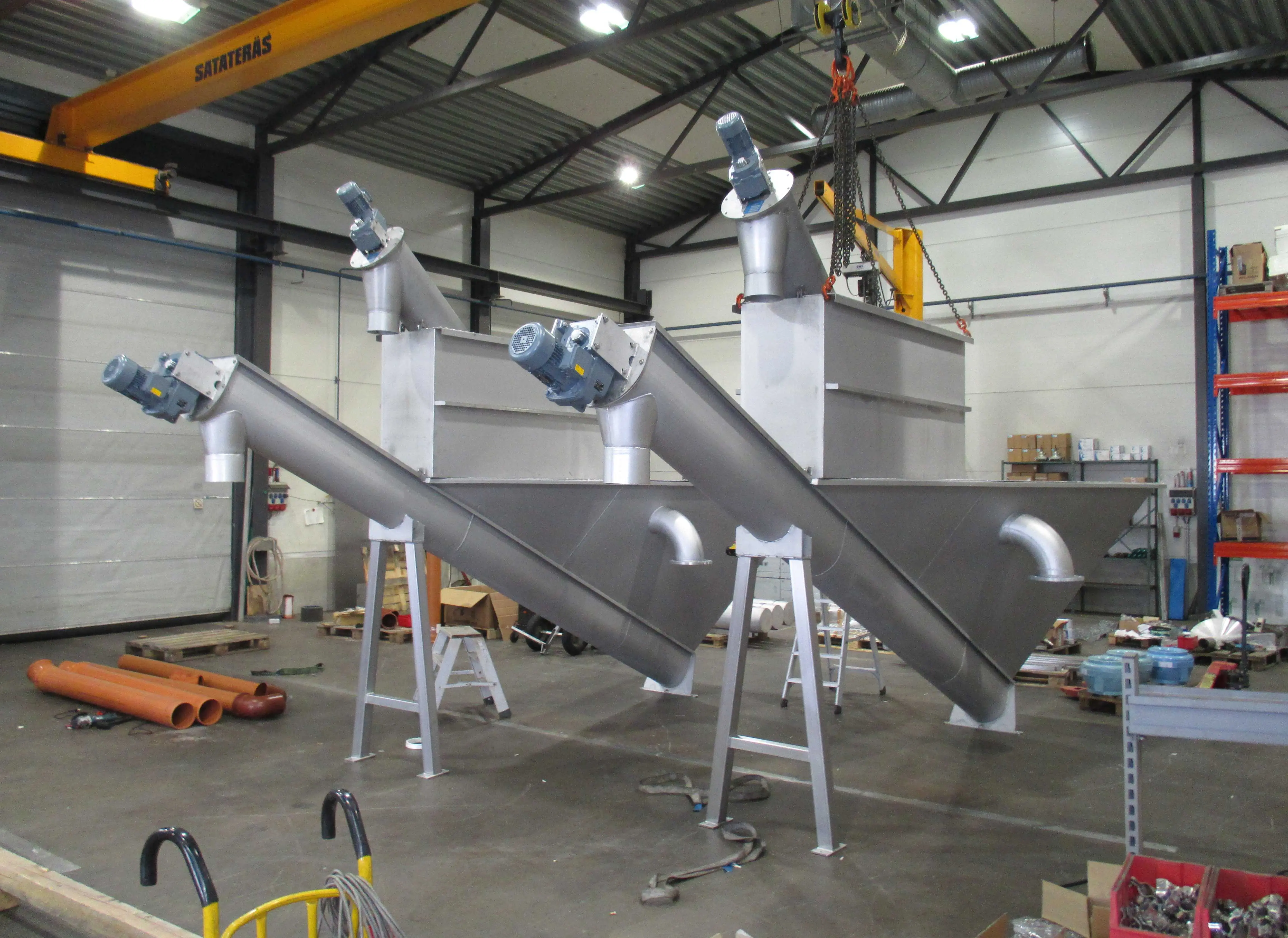 Многоступенчатые, барабанные, шнековые и грабельные решетки, комбинированные установки механической очистки, транспортеры, конвейеры и прессы отходов.